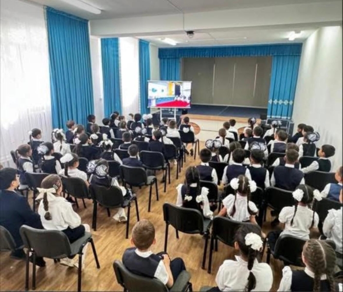 Бүгін гимназиямыздың оқушылары суды ұтымды тұтыну және экологиялық жауапкершілік мәдениетіне тәрбиелеу мақсатында “Суды үнемде-болашақты сақта” тақырыбында бейнебаян көрсетілді. Іс-шараның негізгі мақсаты- оқушыларға судың адам өміріндегі маңызын түсіндіру, табиғи ресурстарды үнемдеуге баулу және қоршаған ортаға деген жауапкершілікті қалыптастыру. Бейнебаян барысында су тапшылығы мәселесі, суды үнемдеу жолдары, экологиялық мәдениеттің маңызы кеңінен насихатталды. Аталған іс-шараға жалпы саны 180 оқушы қамтылды. Оқушылар бейнебаяннан кейін өз ойларымен бөлісіп, пікір алмасты.